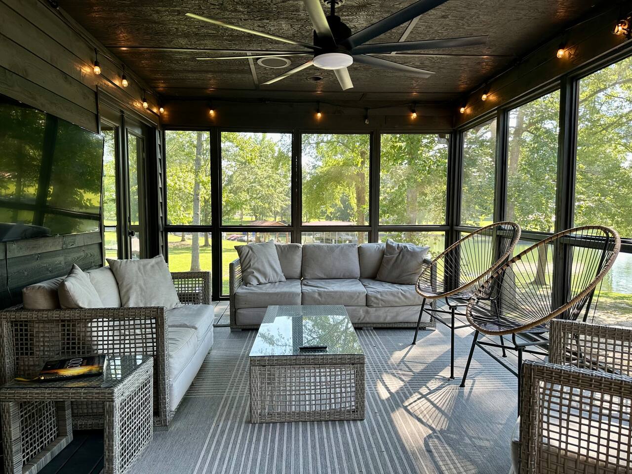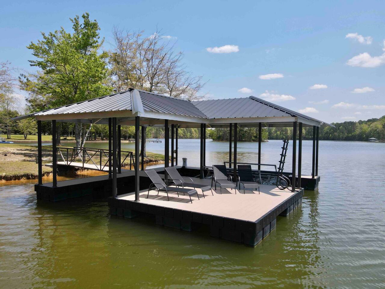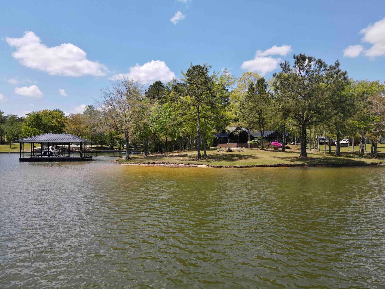 Family friendly private oasis, nestled in a quiet cove on the south end of Wedowee. Perfectly situated on a flat peninsula with grass to the water's edge. Enjoy breathtaking views from every room, while easily keeping an eye on kids. Multiple outdoor areas, perfect for lounging, dining, and stargazing. 5 bedrooms with expansive sleeping accommodation.