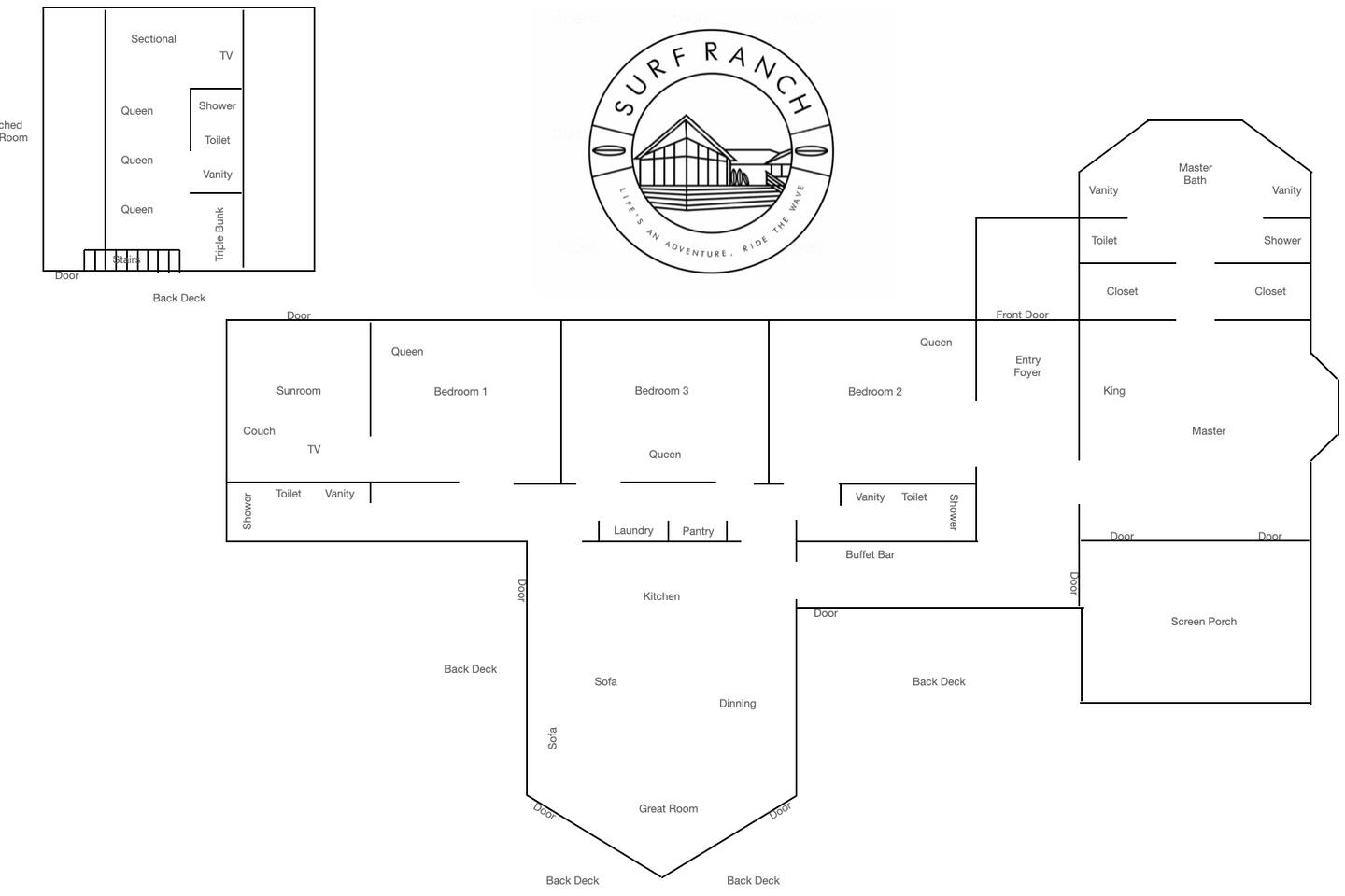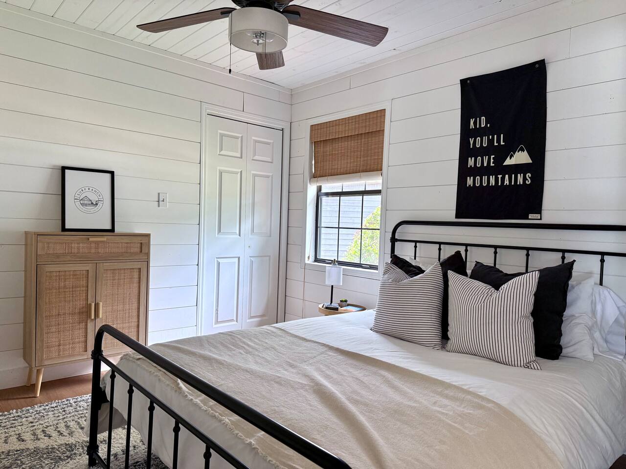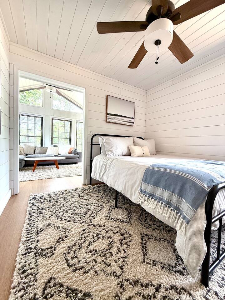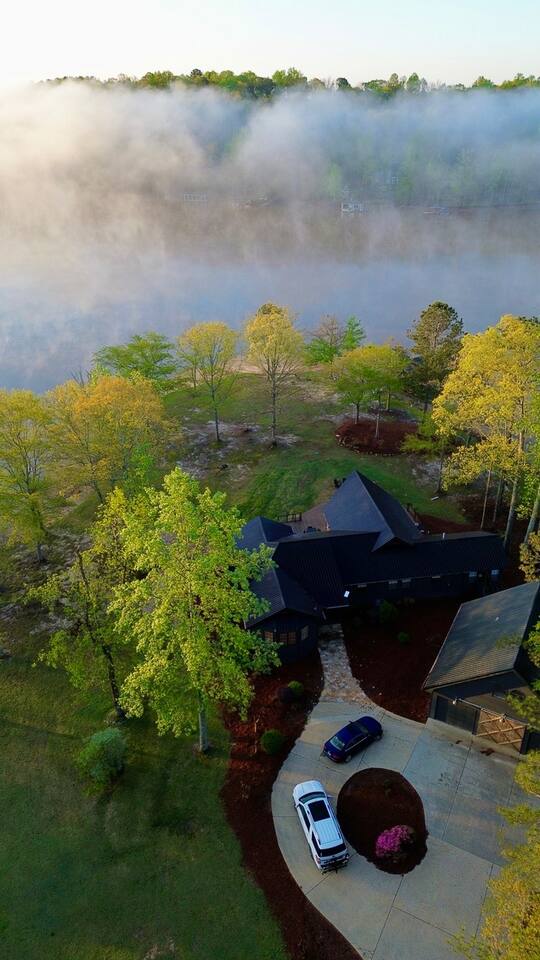 Last mile to get to the house is a gravel/dirt road, my Tesla makes it no problem. We just upgraded to Starlink internet as of 10/7/22. Lake Wedowee water levels vary: Full pool May 1 - Oct 1 it will be down approximately 8 ft Jan - March 30 for shore management. The lake drops approx 1 ft per week from Oct 1 to Dec 1. April 1 the lake begins to fill approx 2 ft per week until full May 1. If bringing a boat we have a launch ramp adjacent to the house. We also have several places that offer boat rentals. The main house has 4 bedrooms and 3 bathrooms, bunk room is above the detatched garage and has a full bath. See photos for plan view of home.